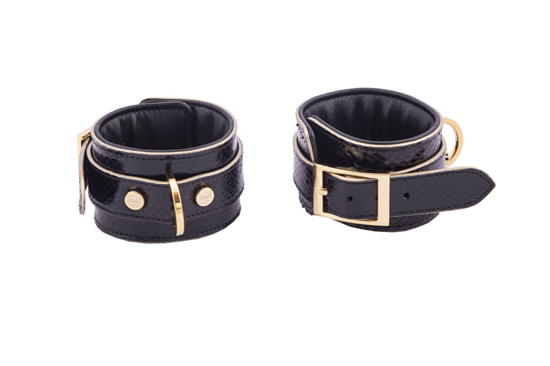 Cavigliere in Snake Col. Nero Foderate in nappa col nera con leggera imbottitura.