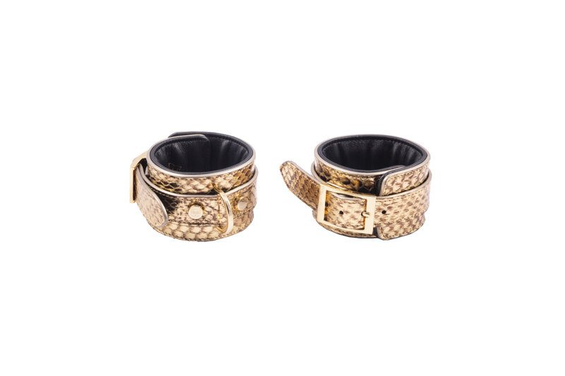Cavigliere in Snake col Oro Antico Foderate in nappa col nera con leggera imbottitura.