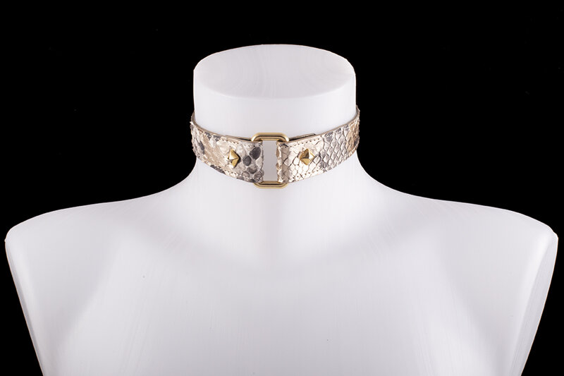 Choker in Real Python col.Roccia dipinto a mano col. Oro al centro h. cm 2,5 stringendosi ai lati ad 1,5 cm.