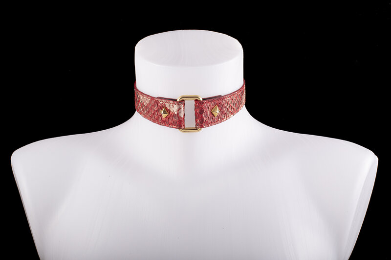 Choker in Real Python col.Rosso dipinto a mano col. oro al centro h. cm 2,5 stringendosi ai lati ad 1,5 cm.