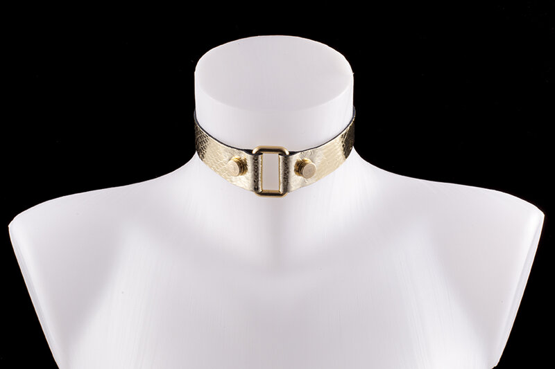 Choker in Real Snake col. Oro al centro h. cm 2,5 stringendosi ai lati ad 1,5 cm.