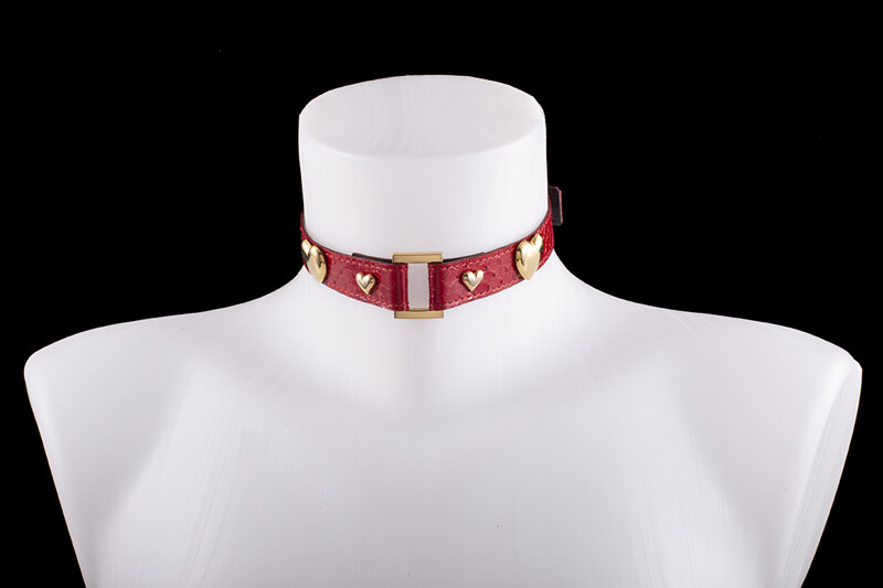 Choker in Real Snake col. Rosso h. cm 2 foderato con Vitello col nero.