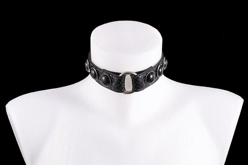 Choker in Real Snake h. cm 2,5 foderato in Vitello col nero.