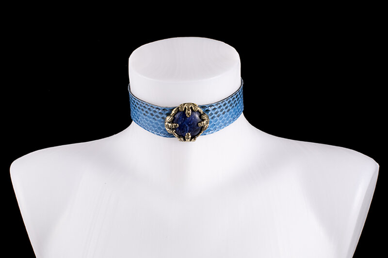 Choker Venus in Real Snake col. Jeans con Pietra incastonata sintetica col Blu