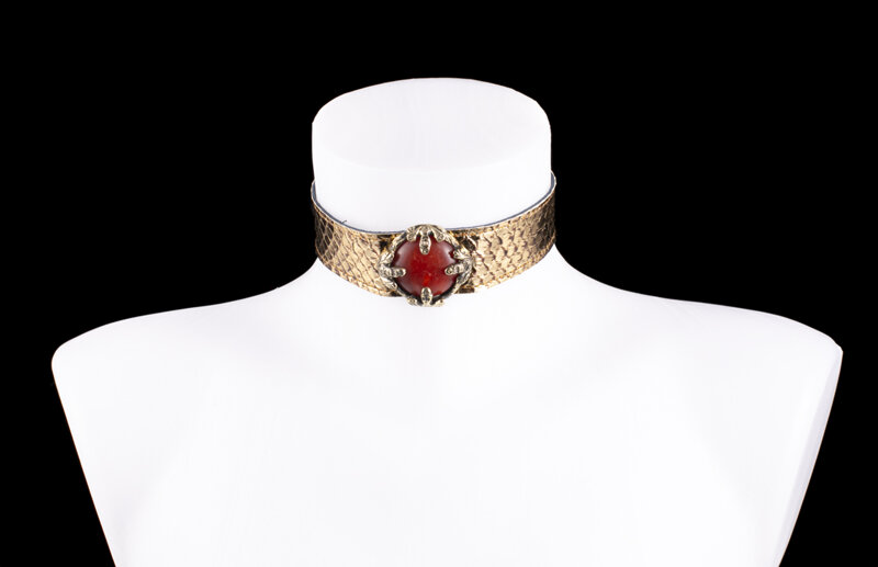 Choker Venus in real Snake Col. Oro Antico con pietra