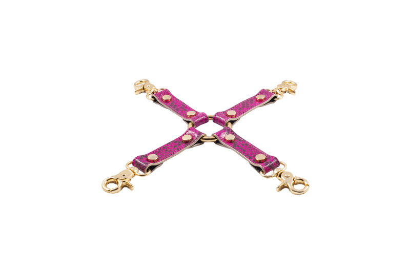 Hog Tie in Vero Pitone Colore Fuxia con 4 moschettoni e 1 anello