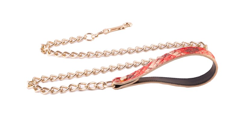 Guinzaglio in Vero Pitone Col. Rosso dipinto a mano col. Oro