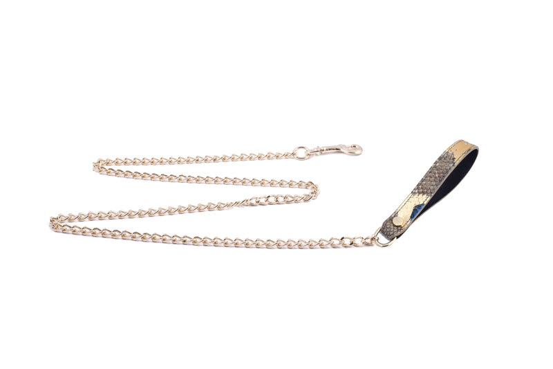 Guinzaglio : Manicotto in Vero Pitone Col Roccia, Oro e Blue cina dipinti a mano
