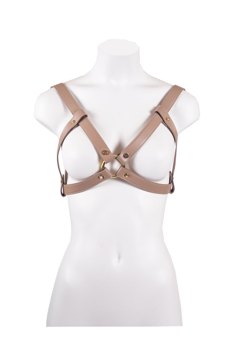 Harness in Vitello Liscio Made in italy col. Nude h. cm 2,5 Regolabile con gemelli nelle bretelle dietro e Fibbia retro schiena Metalleria Galvanica col. Oro