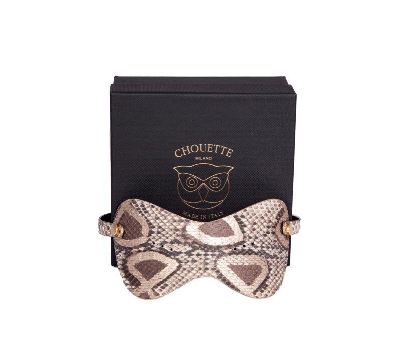 Mascherina in Vero Pitone Col. Roccia dipinto a mano Col. Marrone e Col. Oro