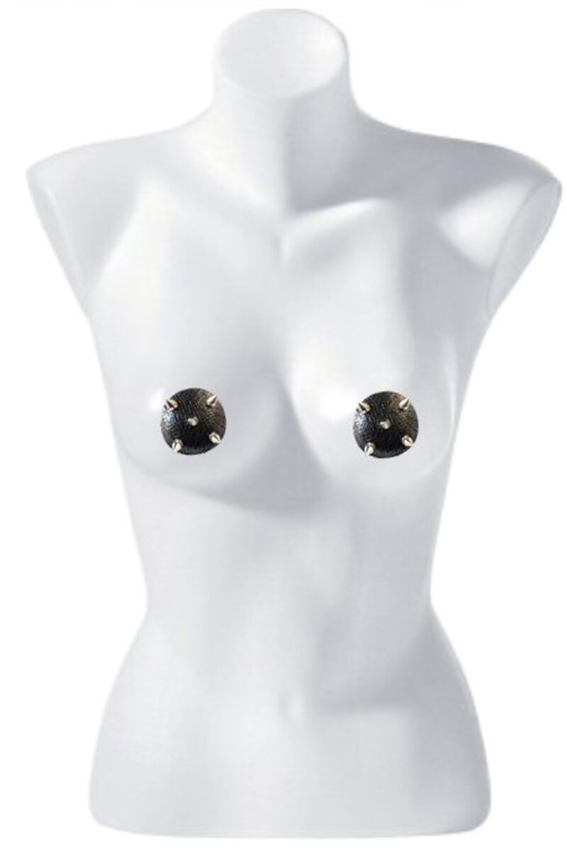 Nipple Cover su forma, in Real Snake Col. Nero con Borchie metalliche finitura Nickel
